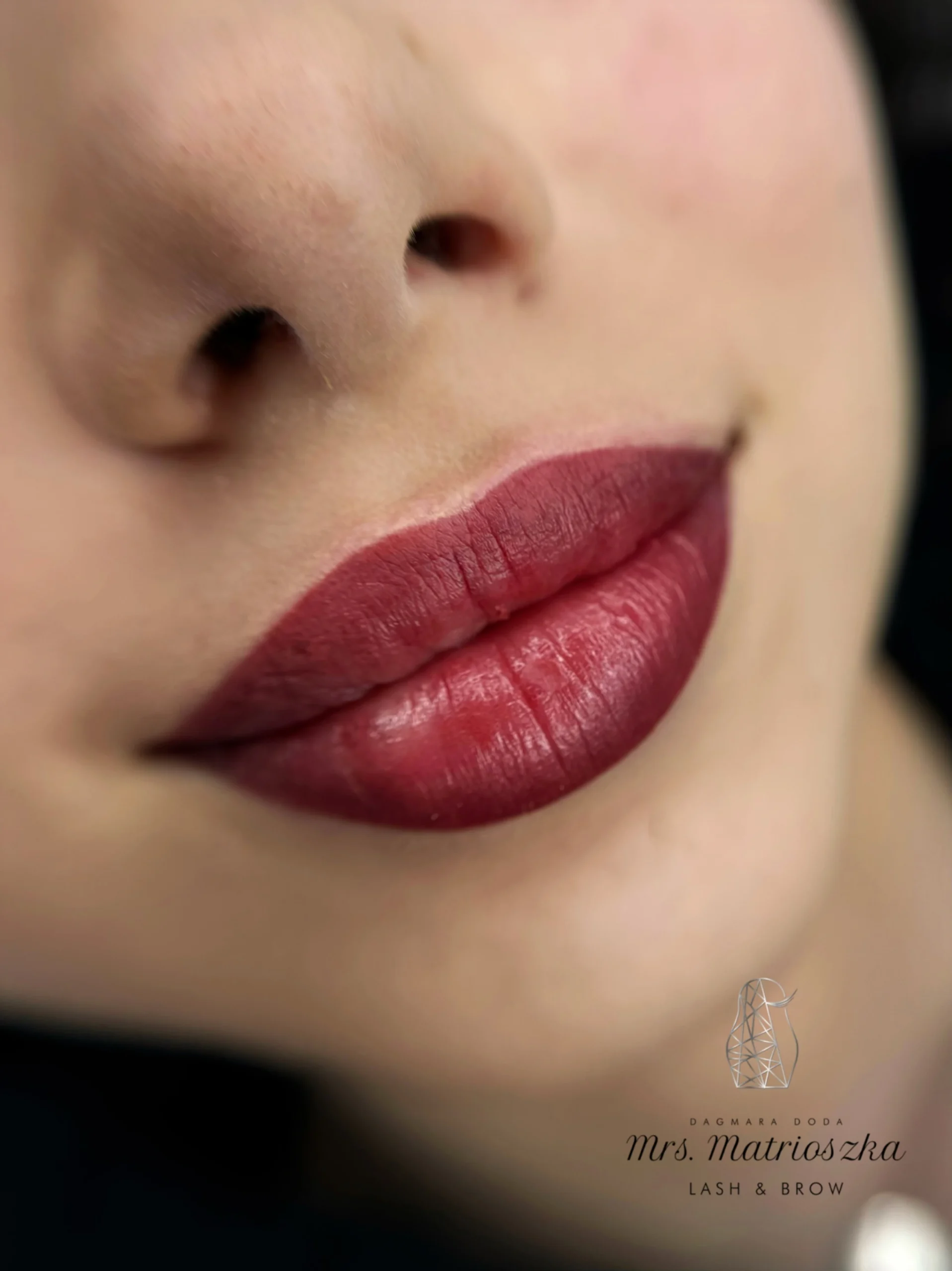 Efekt: Równomierne, naturalnie rozjaśnione usta gotowe na nową pigmentację, przywrócenie idealnego konturu i proporcji.